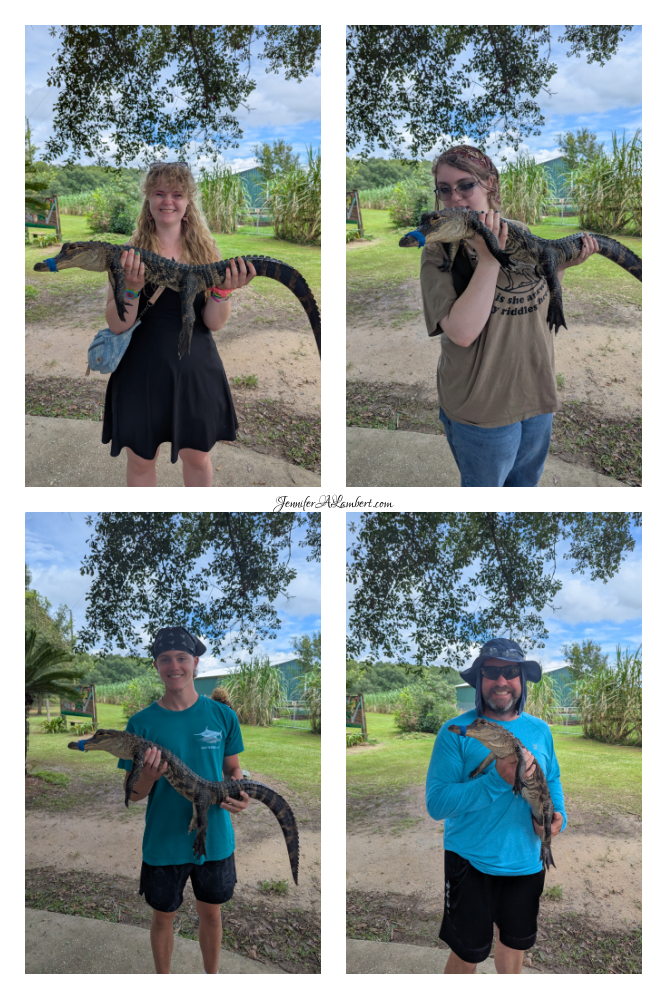 We loved walking around and feeding the alligators and listening to one of the shows. We also saw lots of herons and bugs!