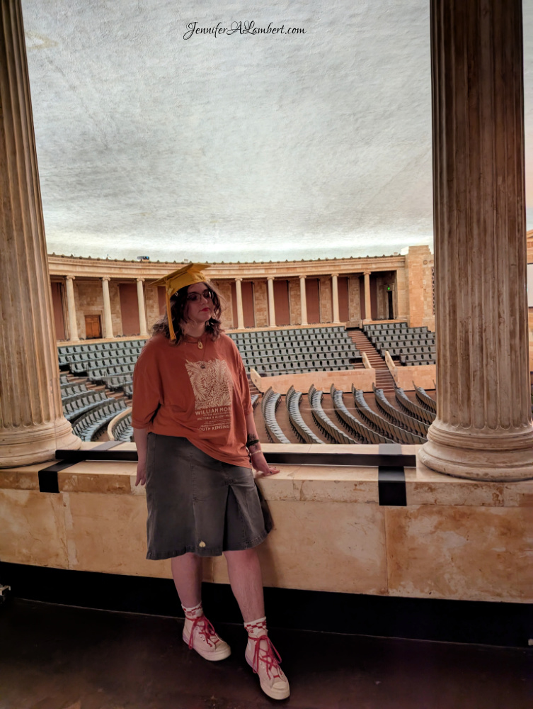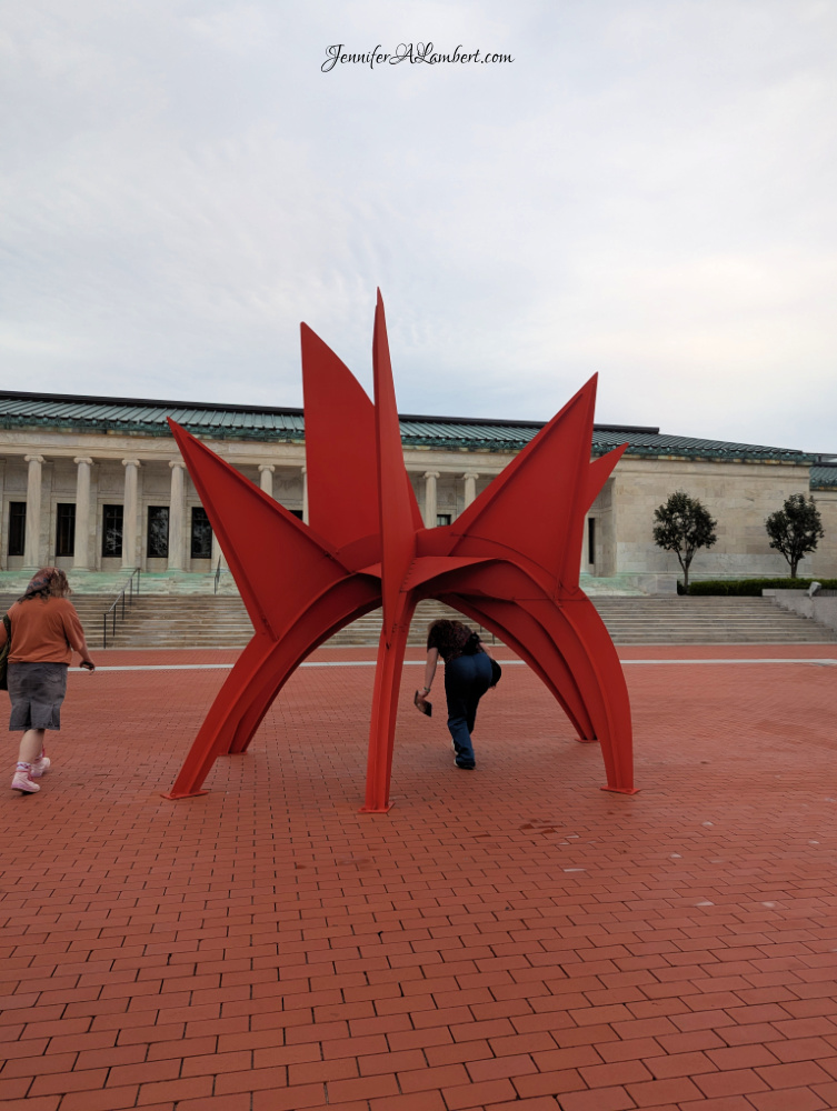 There’s a lovely classics exhibit with a fun theatre, and African art, and so many pieces we have studies over the years – and outside sculptures and a glass building. It’s a lot!